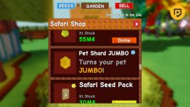 You can buy the jumbo pet mutation shard from the safari shop for 500 mil shekels or 399 Robux during the Safari Harvest event. It unlocked after players reached the community milestone of contributing a total of 55 bil points to the Safari Harvest.
