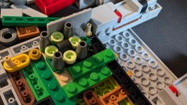 Another aspect that makes this build so special is that—and I realize how pretentious this sounds, but it’s definitely true—the instructions are put together with wit and timing. The first thing you’re asked to build is one of the two cartridges, along with a display stand for it that contains a slot for storing the spare lenticular cards. But rather than going straight onto the second, you instead are launched into the Game Boy itself, building it from the inside out. This means that you’re constructing its green network board first, then adding the base below, before putting in the mechanisms for the buttons and the buttons themselves, and only after that’s all in place putting together its complete shell. It’s so delightful that it’s constructed just as a Game Boy would have been, and those button mechanisms are just so smart. The d-pad uses a concealed rubber tire to provide the push-back when you press it in any of its four directions, while the A and B buttons get their exact sponginess from a cunningly placed rubber band pegged around three c-arm clips. The results feel so realistic, making these super-smart tricks feel all the more remarkable.